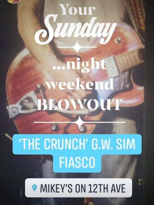 Super Sundays!!! Our Sit Back Jam with Tom Phillips & friends + The Weekend BLOWOUT: ‘The Crunch’ with G.W. Sim Fiasco Sunday, September 5, 2021 3:00 p.m. 11:59 p.m. 15:00 23:59 Google Calendar ICS Join us EVERY Sunday Afternoon… Then it’s our Sunday Night Weekend BLOWOUT: It’s ‘The Crunch’ with G.W. Sim Fiasco!!! @ 8:00 PM …this will be GOOOOD! BOOK YOUR EVENT NOW!!! 403-452-8060