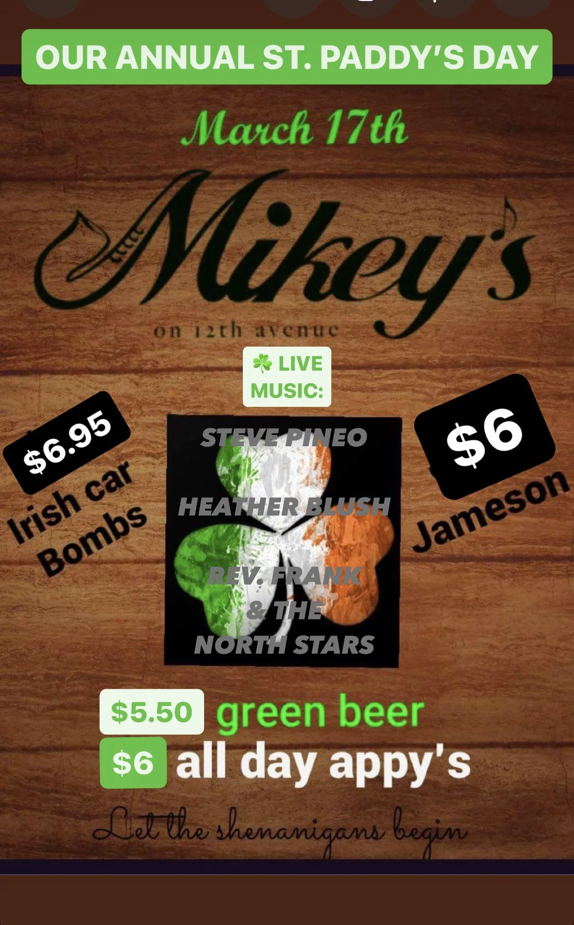 LIMERICK’S FINEST REV. FRANK & THE NORTH STARS 8:30ish PM