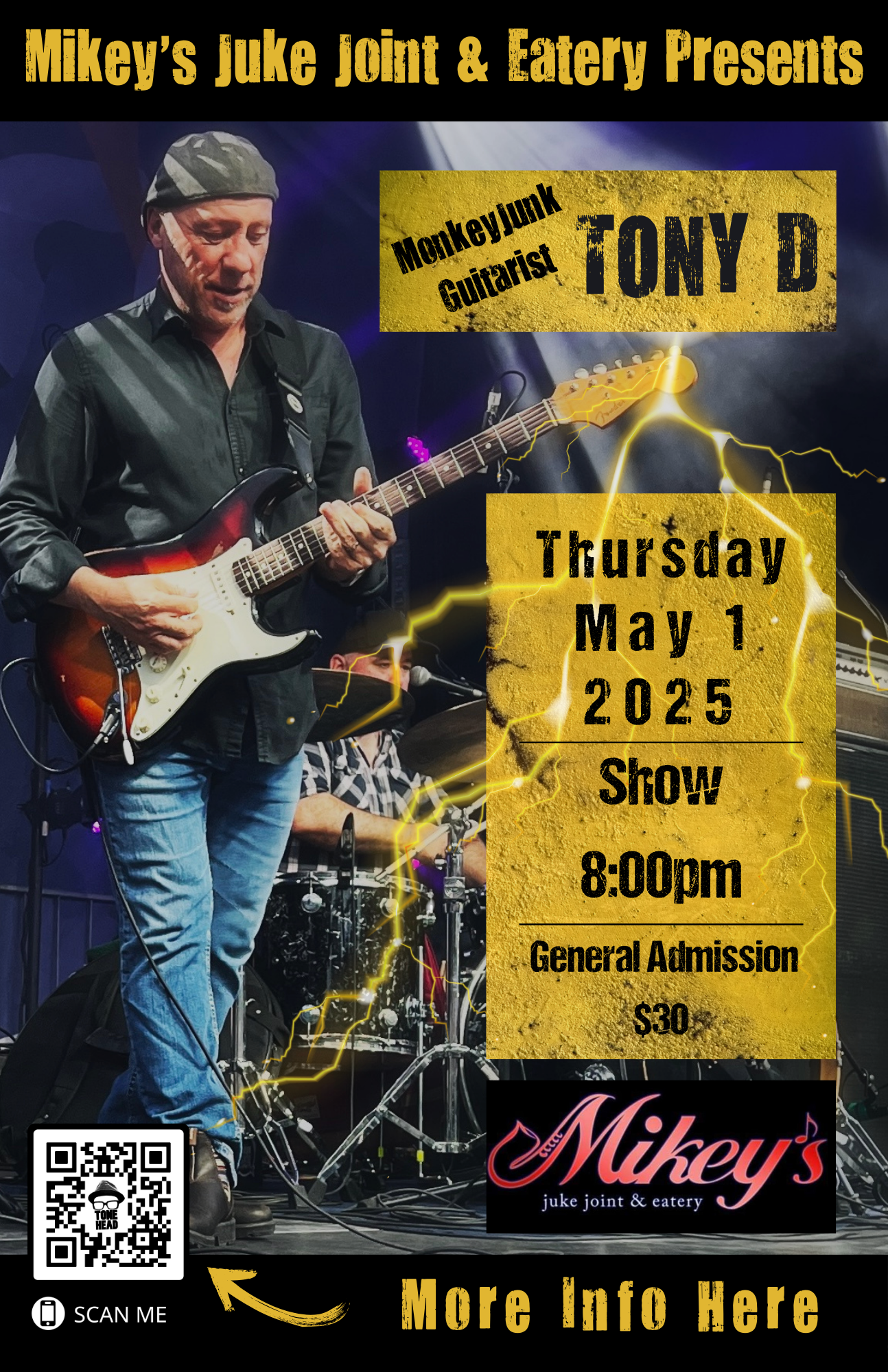 Tony D! Juno Award winning guitarist with the band MonkeyJunk has a new album that is at the top of the Roots & Blues charts! Don’t want to miss this show folks!!