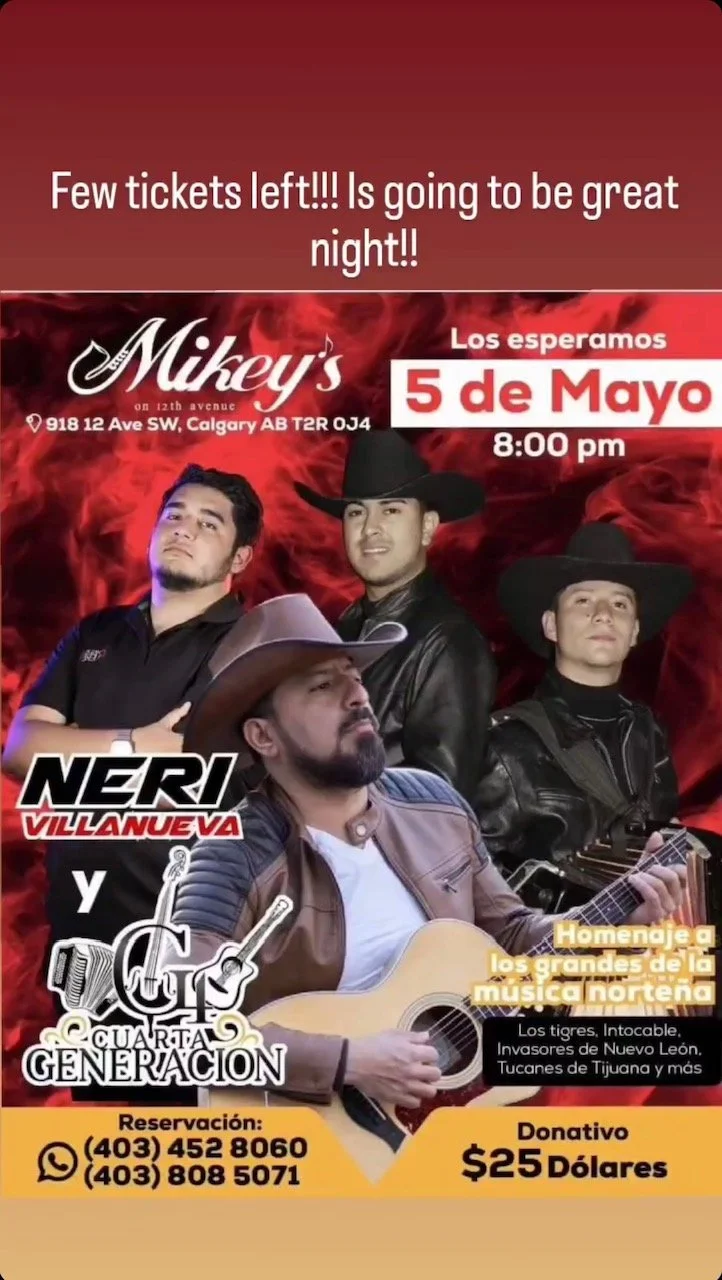 Enjoy OUR HAPPY/APPY HOUR starting at 2:00 with MARK SADLIER-BROWN in from 4:00 to 7:00...then we have a LATIN CINCO DE MAYO EVENT! Friday, May 5, 2023 4:00 p.m. 11:59 p.m. 16:00 23:59 Google Calendar ICS Enjoy OUR HAPPY/APPY HOUR starting at 2:00 with MARK SADLIER-BROWN 4:00 to 7:00… [$5 Cover] ...then we have a LATIN CINCO DE MAYO EVENT!@ 9:00 PM [COVER CHARGE]BOOK YOU PARTY HERE!!! 403-452-8060
