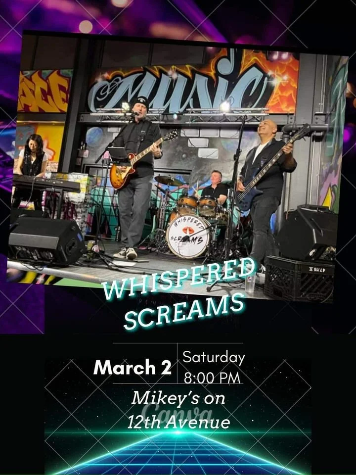 ENJOY MIKE CLARK BAND’S FAMOUS BLUES JAM THIS AFTERNOON! ...THEN AT 9:00 WE WELCOME BACK RETRO FAVES: WHISPERED SCREAMS!!!