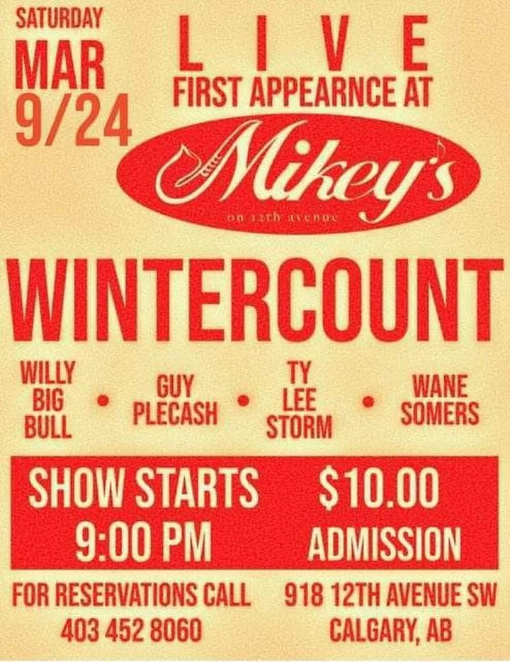 ENJOY MIKE CLARK BAND’S FAMOUS BLUES JAM THIS AFTERNOON! ...then at 9:00 WE WELCOME to our stage for the first time: WINTERCOUNT!!!