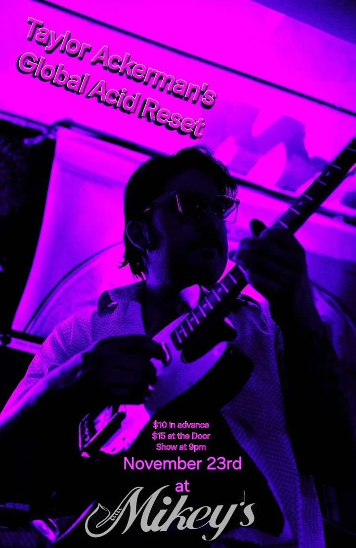 ENJOY MIKE CLARK BAND’S FAMOUS BLUES JAM THIS AFTERNOON from 3:00 until 7:00...THEN AT 9:00 it's WE WELCOME TAYLOR ACKERMAN'S GLOBAL ACID RESET TO THE JOINT!!!
