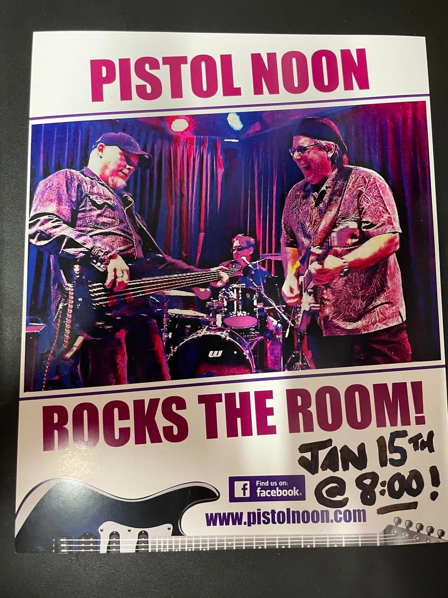 ENJOY MIKE CLARK BAND’S FAMOUS BLUES JAM! ...then tonight: the TERRIFFIC ROCK SOUNDS OF PISTOL NOON!!! Saturday, January 15, 2022 3:00 p.m. 11:00 p.m. 15:00 23:00 Google Calendar ICS ENJOY MIKE CLARK BAND’S FAMOUS BLUES JAM! MIKE CLARK BAND! Tonight:PISTOL NOON!!!!!8:00 PM [Cover] PISTOL NOON!!!