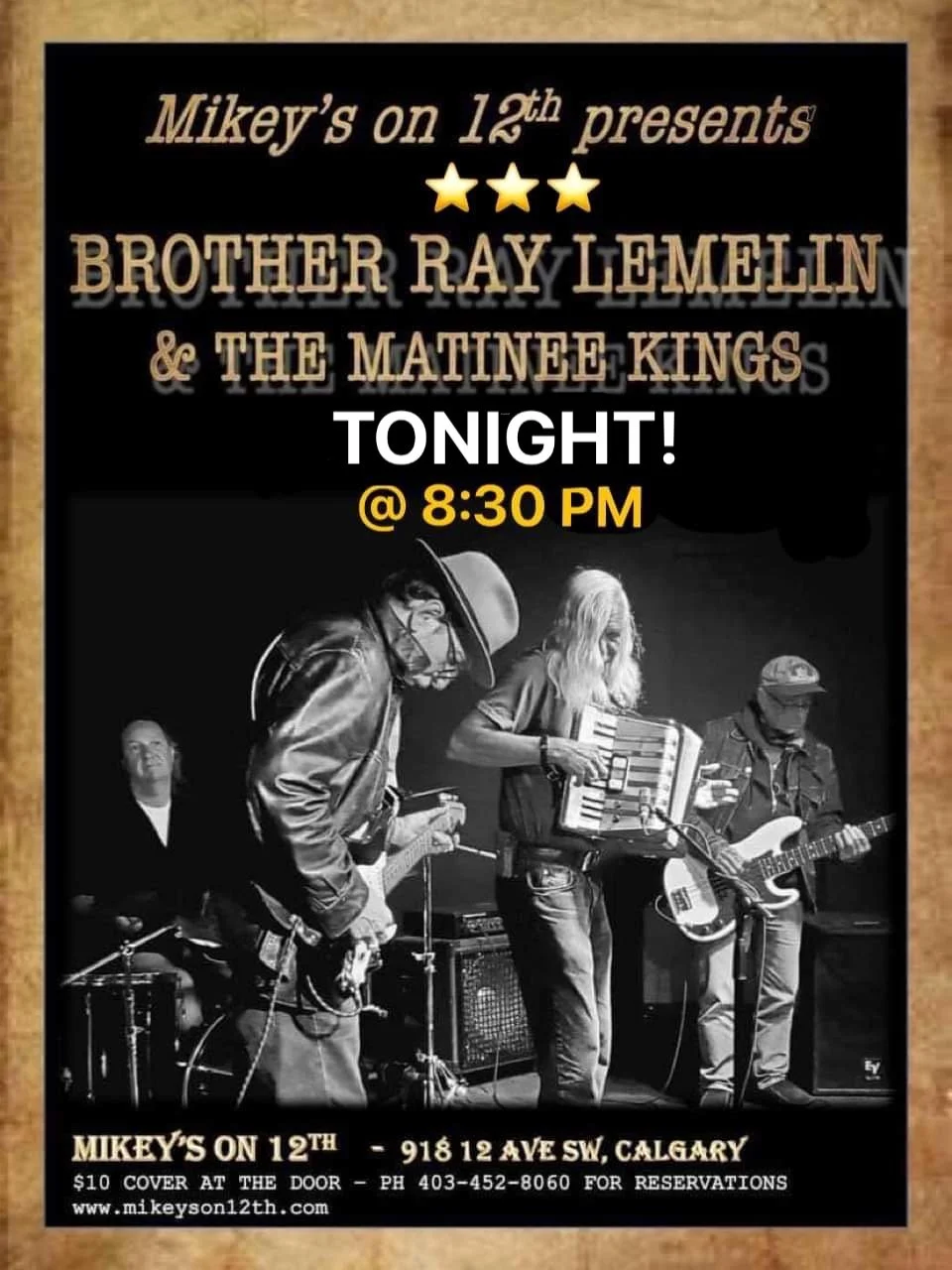 ENJOY MIKE CLARK BAND’S FAMOUS BLUES JAM! ...then THE WEEKEND CONTINUES @ 8:30 WITH BROTHER RAY LEMELIN & THE MATINEE KINGS! Saturday, July 23, 2022 3:00 p.m. 11:59 p.m. 15:00 23:59 Google Calendar ICS ENJOY MIKE CLARK BAND’S FAMOUS BLUES JAM! MIKE CLARK BAND! TONIGHT: THE WEEKEND CONTINUES @ 8:30 WITH BROTHER RAY LEMELIN & THE MATINEE KINGS! BROTHER RAY LEMELIN & THE MATINEE KINGS!