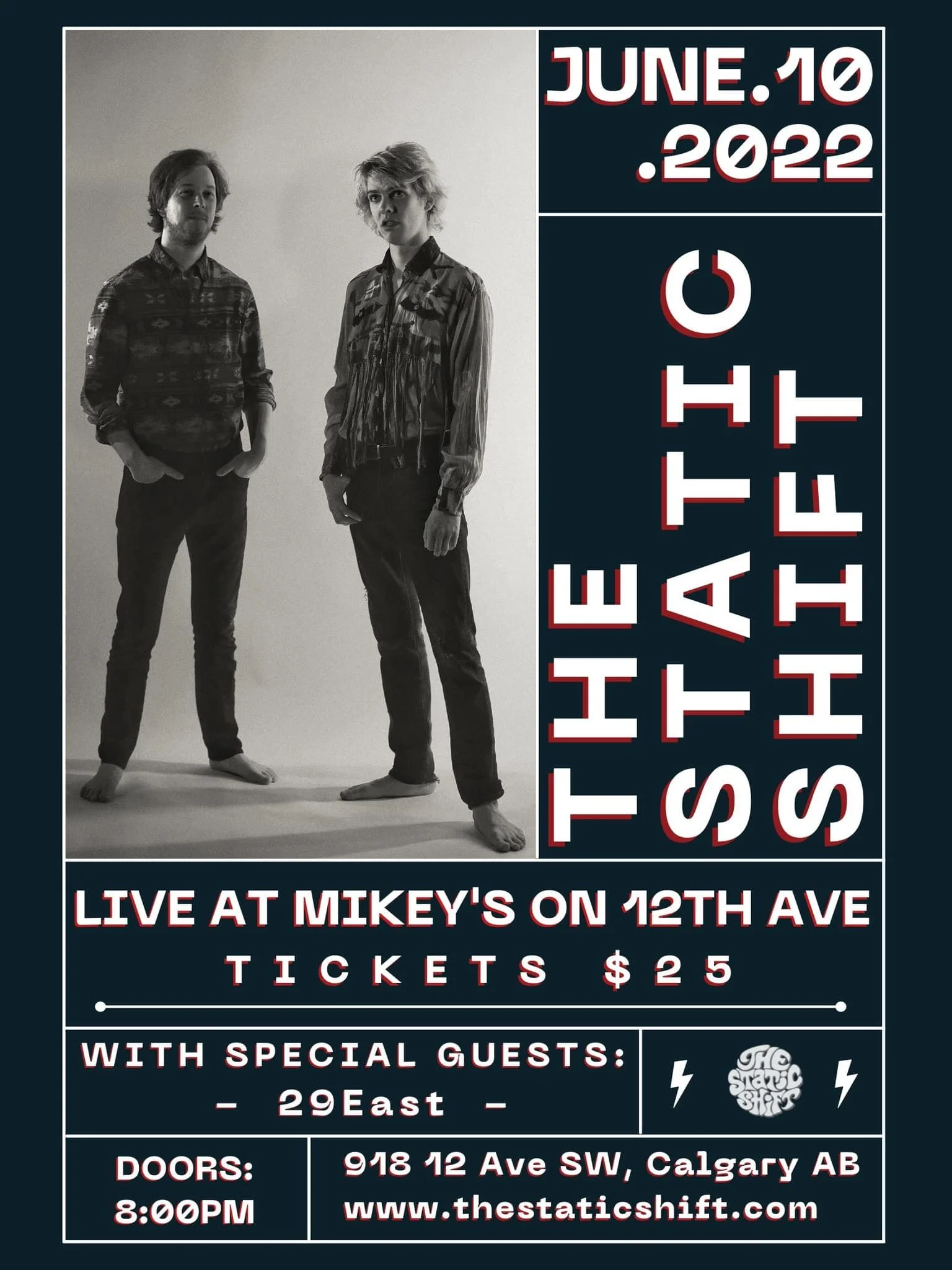 The Static Shift returns to Mikey's on 12th on June 10th, 2022. With special guests from Victoria BC '29 EAST', you don't want to miss this one!